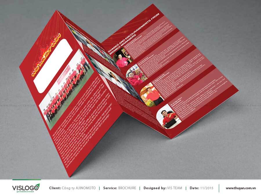 Công ty Ajinomoto Việt Nam chuyên nghiên cứu và sản xuất các loại sản phẩm thực phẩm và gia vị với chất lượng tốt nhất, an toàn, phù hợp với khẩu vị của người Việt. Dự án thực hiện thiết kế brochure cho chiến dịch We Must Win tổ chức thường niên tại Ajinomoto, nhằm tổng kết hoạt động bán hàng trong việc giới thiệu các sản phẩm “Ngon số 1” - Aji ngon