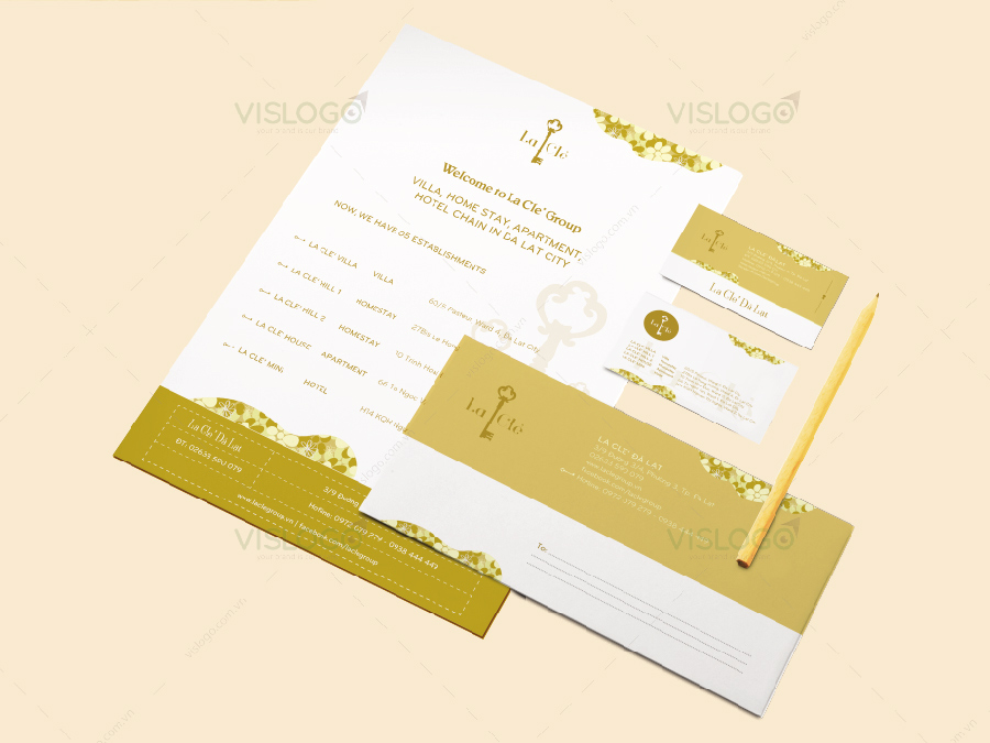 Logo LA CLE’ xây dựng từ hình ảnh chiếc chìa khóa theo đúng tên thương hiệu (LA CLE’' tiếng Pháp nghĩa là chìa khóa), với bố cục lồng ghép vào trong chữ tạo tổng thể logo hài hòa, dễ nhớ. Sau logo, VISLOGO còn triển khai toàn bộ các ấn phẩm cho LA CLE’ hoàn chỉnh một bộ nhận diện đồng nhất và chuyên nghiệp.