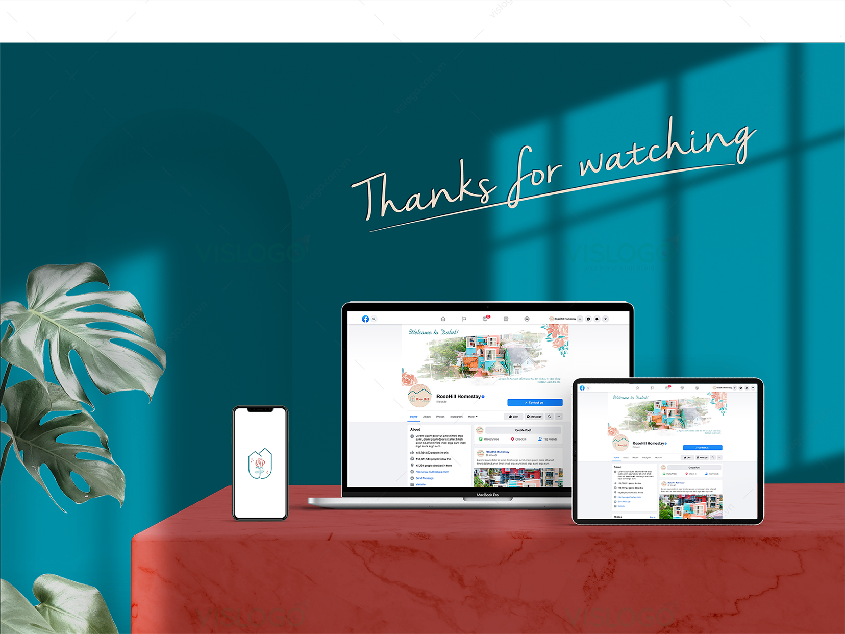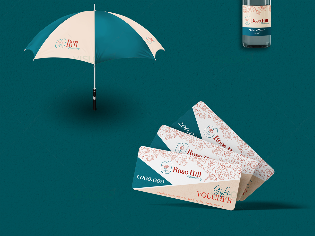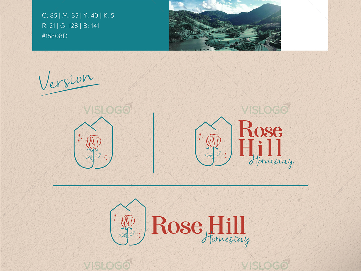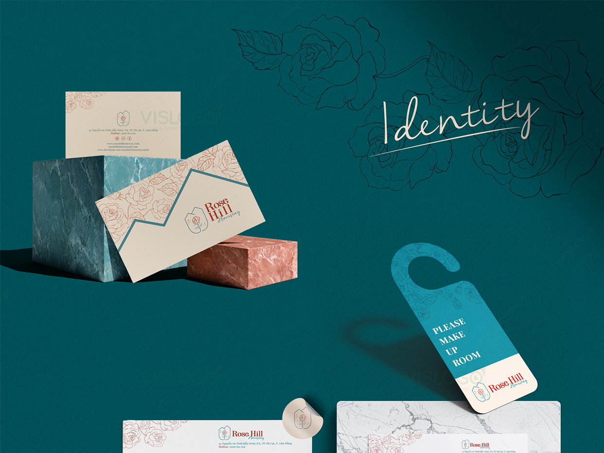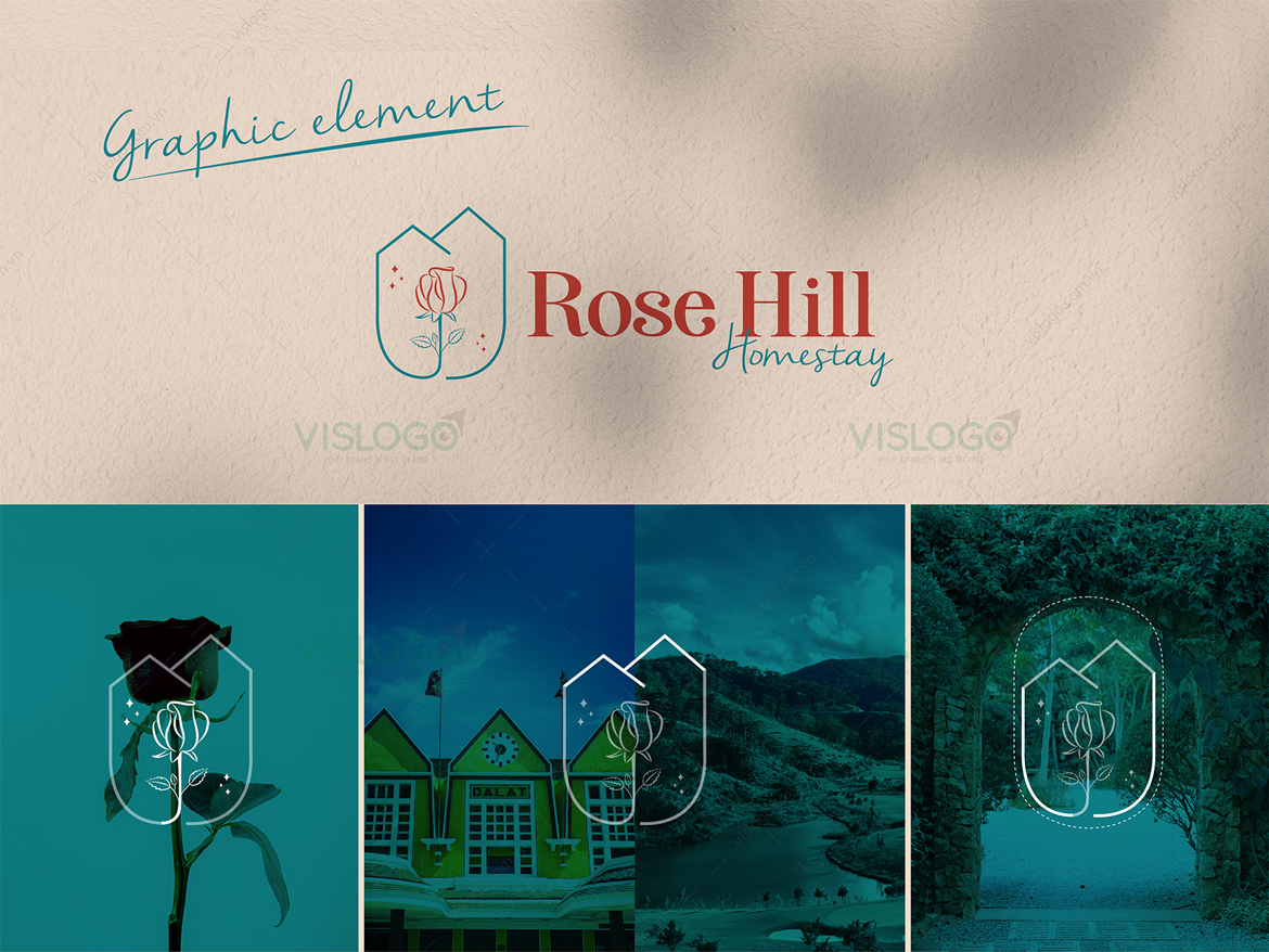 Logo được thiết kế theo phong cách đơn giản, tinh tế, bắt mắt, lãng mạn. Được lấy ý tưởng từ hình ảnh những quả đồi, mái ngói đặc trưng của các biệt thự ở Đà Lạt và hình ảnh hoa hồng, ô cửa mái vòm trong kiến trúc của homestay Rose Hill. Đồng thời VISLOGO còn triển khai thiết kế bộ nhận diện thương hiệu với các hạng mục phù hợp sử dụng cho homestay, tạo nhận diện thương hiệu độc đáo và nhất quán.
