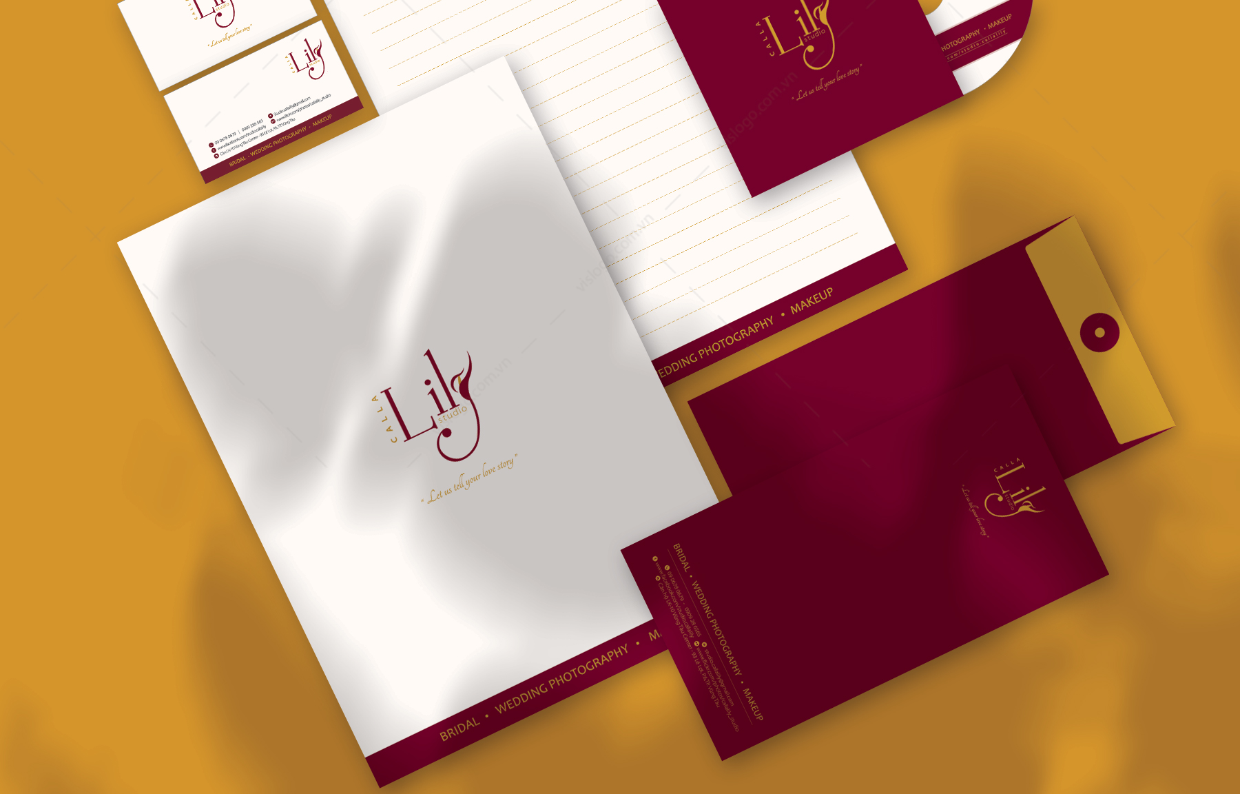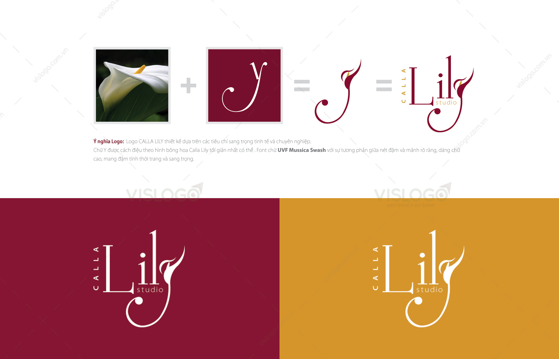 CALLA LILY mang ý nghĩa của sắc đẹp lộng lẫy, hạnh phúc vĩnh cửu. Logo CALLA LILY được thiết kế từ ý tưởng cách điệu hình ảnh bông hoa Calla Lily lồng vào chữ Y một cách tối giản nhất, thể hiện một hình ảnh logo tinh tế, chuyên nghiệp, thời thượng và sang trọng. Thương hiệu Calla Lily chuyên cung cấp tất cả các dịch vụ cưới, bao gồm: chụp album pre-wedding, váy cưới & Vest, trang điểm, quay phim chụp hình ngày cưới v.v…