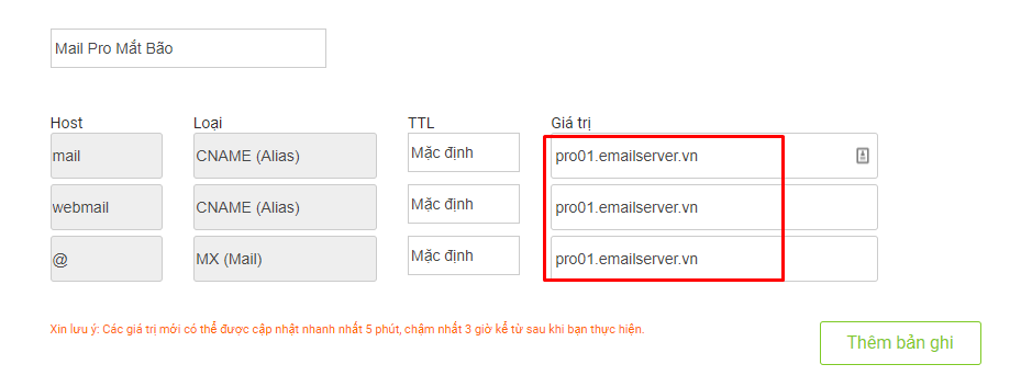 Khi bạn mua dịch vụ lưu trữ của mình từ Mắt Bão, họ sẽ gửi email cho bạn hai máy chủ định danh. Sau đó, bạn đăng nhập vào Mắt Bão, chỉnh sửa cài đặt tên miền và nhập địa chỉ máy chủ định danh của bạn. Khi đó miền và máy chủ của bạn sẽ được kết nối.